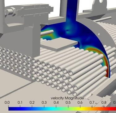 Untuk memahami dan mengatasi masalah distribusi aliran, analisis menggunakan simulasi engineering seperti Computational Fluid Dynamics semakin banyak digunakan dalam desain dan evaluasi heat exchanger. Melalui simulasi, engineer dapat memvisualisasikan pola aliran fluida di dalam peralatan, mengidentifikasi area dengan distribusi aliran yang tidak merata, serta mengevaluasi berbagai alternatif desain untuk meningkatkan kinerja sistem. Pendekatan ini membantu memastikan bahwa heat exchanger dapat bekerja secara optimal dalam mendukung operasi pembangkit listrik.