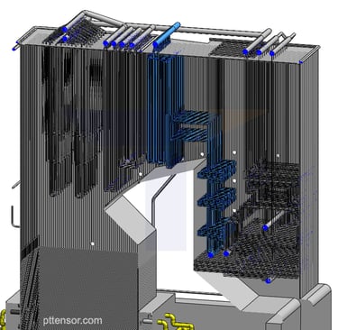 Jasa simulasi CFD industri pembangkitan energi juga banyak digunakan untuk mengevaluasi sistem perpindahan panas seperti heat exchanger, air preheater, condenser, serta cooling tower. Simulasi ini membantu memastikan distribusi aliran fluida yang merata serta meningkatkan efisiensi perpindahan panas dalam sistem pendinginan dan pemulihan energi.