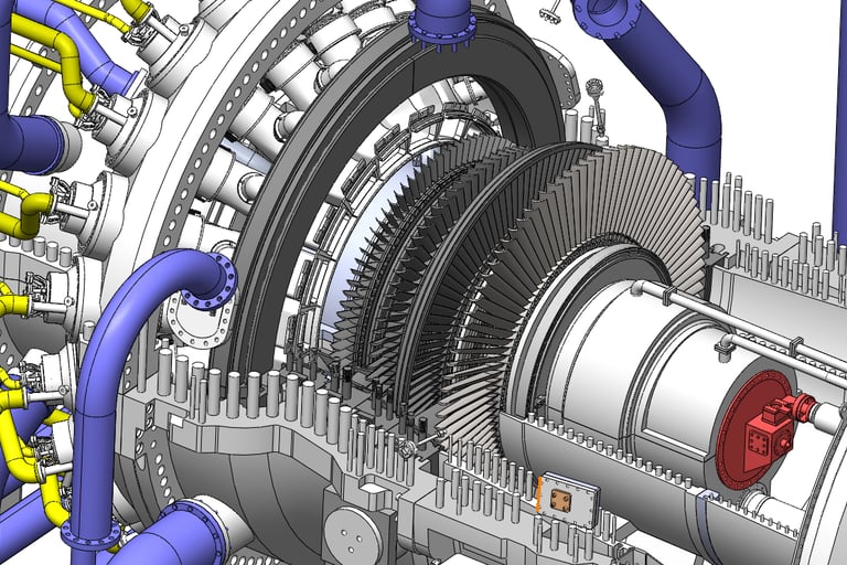 Selain pada boiler, CFD juga digunakan untuk menganalisis aliran pada turbin gas maupun turbin uap. Distribusi tekanan, temperatur, dan kecepatan aliran di sekitar blade turbin dapat dipelajari untuk meningkatkan efisiensi energi dan mengurangi kerugian aerodinamis. Dengan pendekatan ini, desain komponen turbin dapat dioptimalkan untuk menghasilkan performa yang lebih baik.